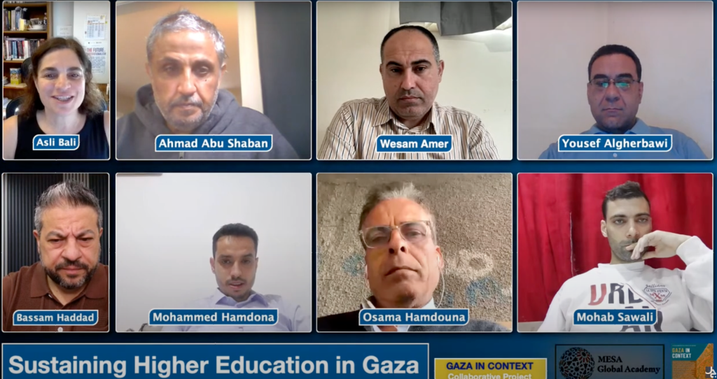 Organized by @MESA_1966 and Gaza in Context, Co-Sponsored by @jadaliyya @ScholarsAtRisk @ScholarRescue @OfficialBrismes @NSMES_ME @UIEConsortium. In this panel six professors from the Gaza Strip discuss their efforts to sustain higher education in the face of genocide and scholasticide. Our guests will also address avenues for rebuilding higher education in Gaza as well as the sorts of contributions others can make.
